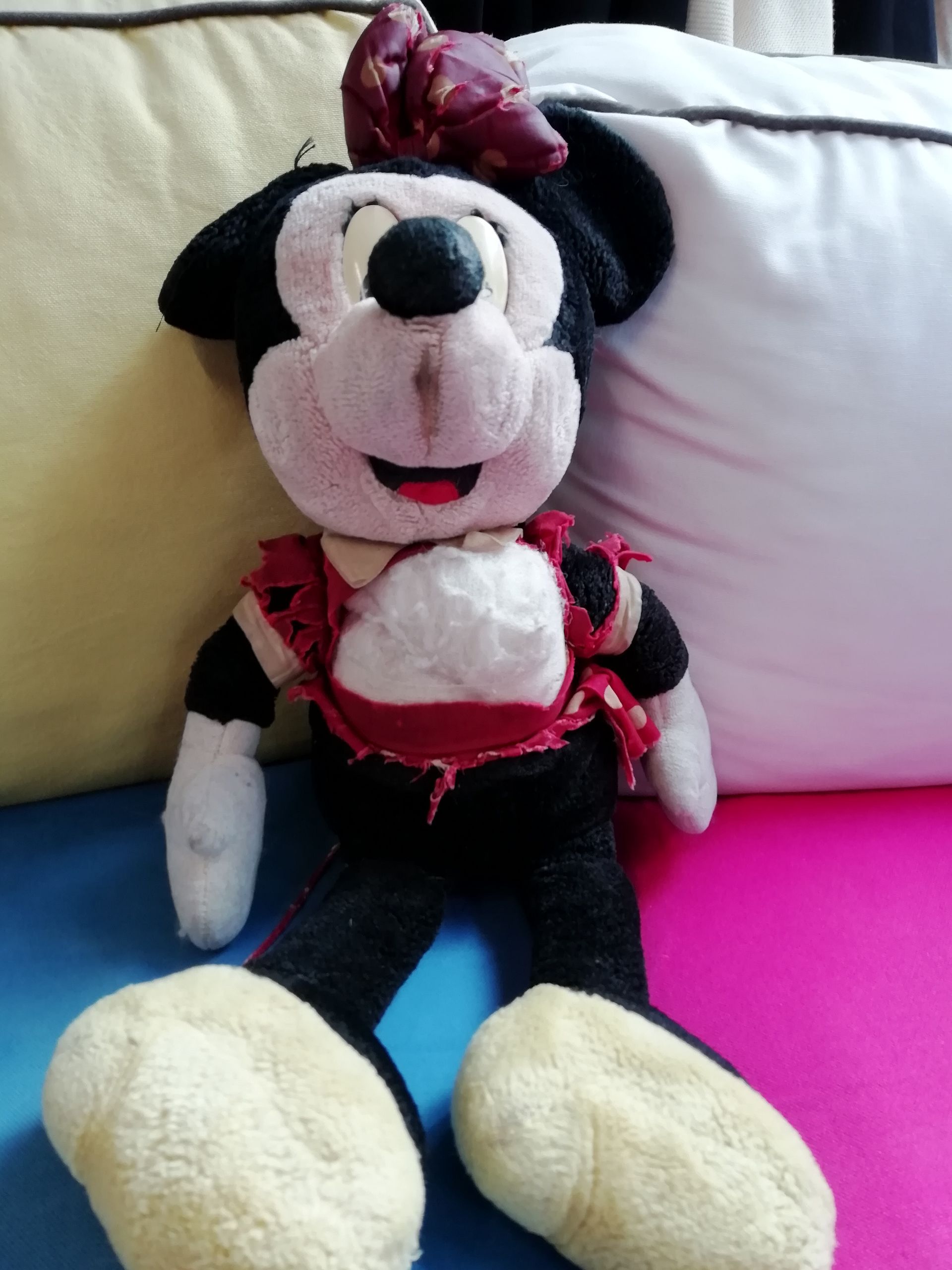 La réparation d'un doudou nécessite bien souvent des recherches pour se rapprocher au plus près de la matière et de la couleur d'origine. Un mot d'ordre, laisser le visage sans retouche, afin d'éviter que le doudou ne perde sa personnalité.